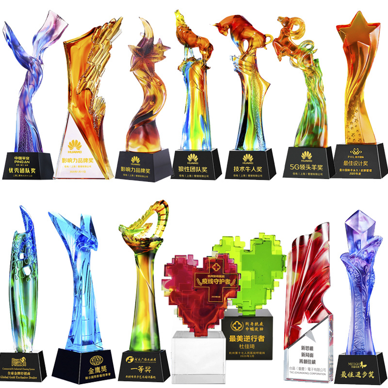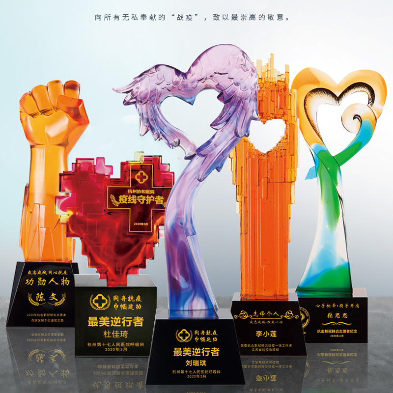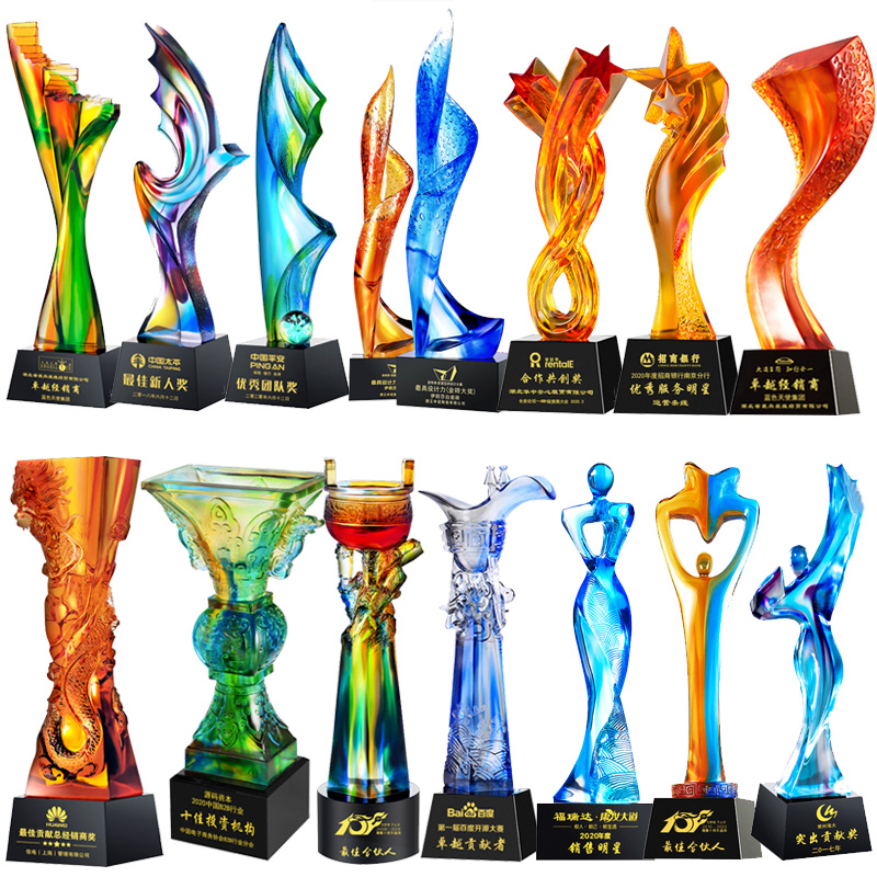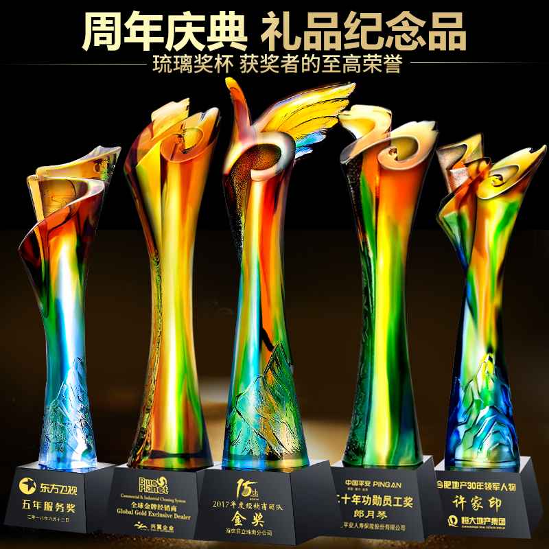 琉璃奖杯定制高档水晶奖牌鼎老鹰牛年爱心慈善周年庆典纪念品定做