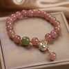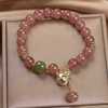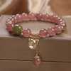 韩国【设计师】天然草莓晶手链女新中式和田玉招财猫国学手串饰品