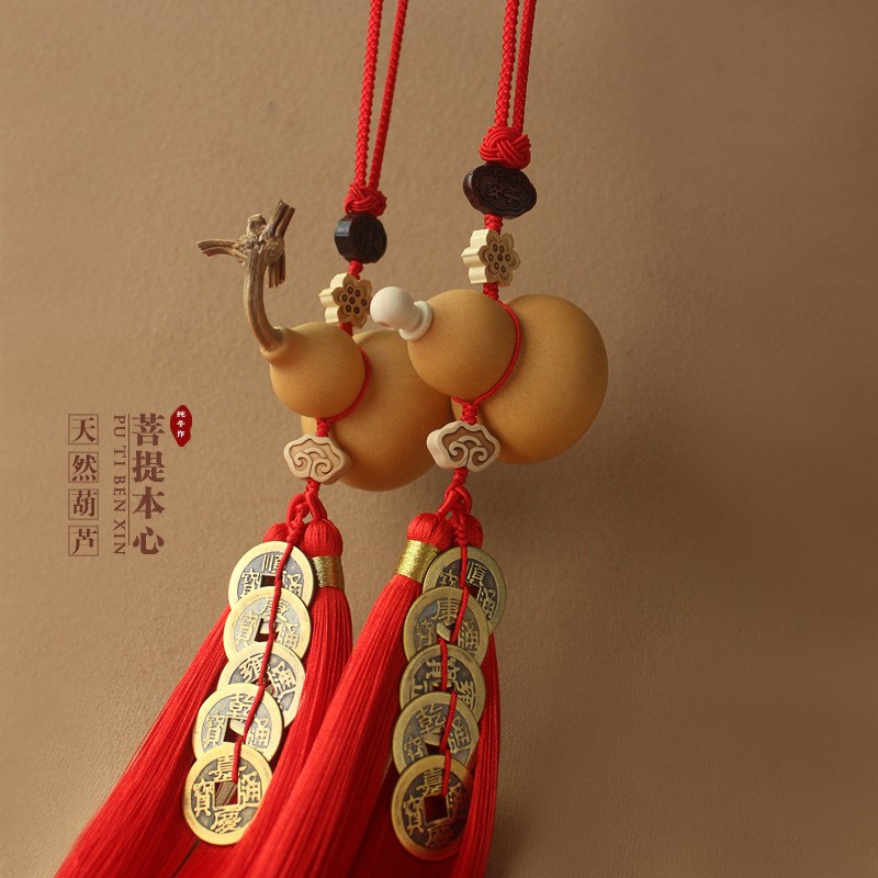 葫芦挂件天然开口门对门大门客厅卧室门红流苏挂纯黄铜加厚五帝钱