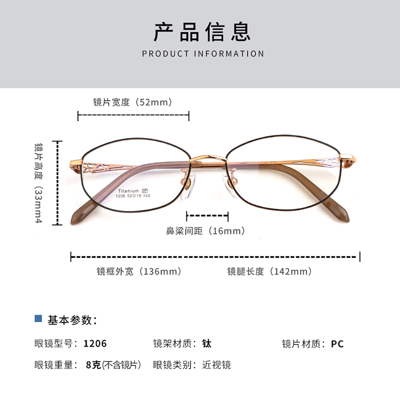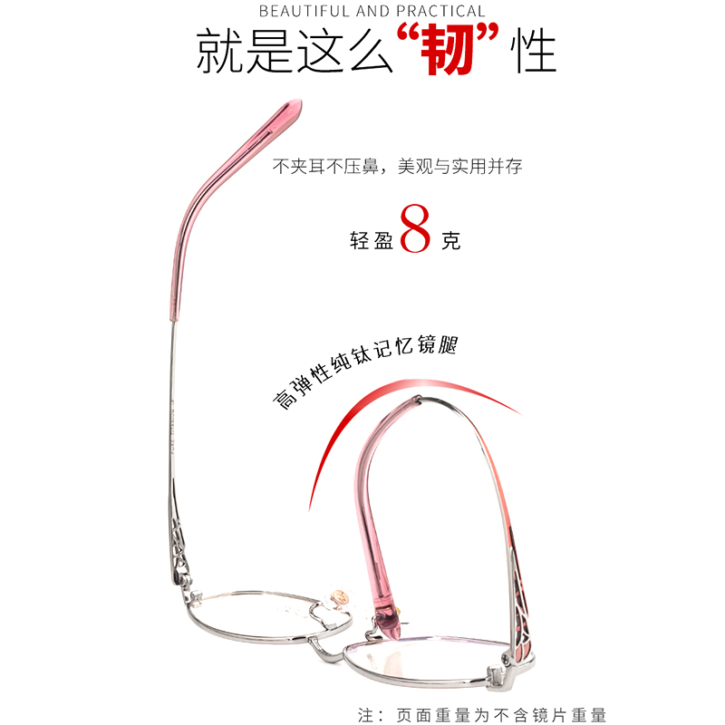 超轻纯钛高度近视眼镜框女金丝小框小脸可配有度数镜片防蓝光1206