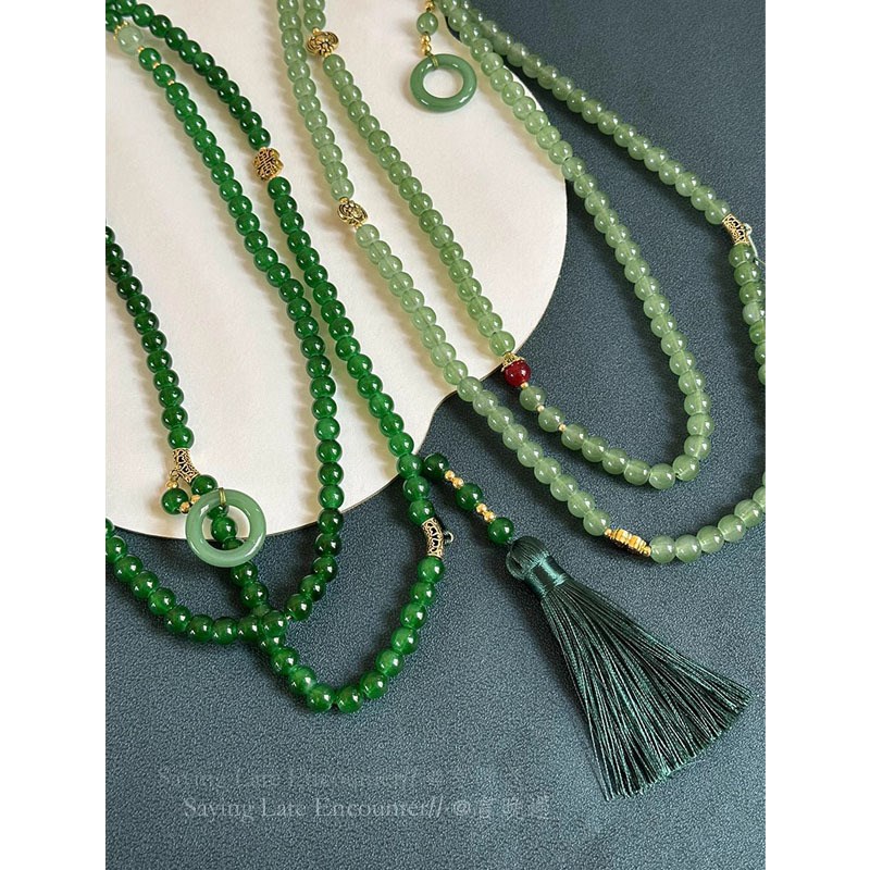 国风108颗绿色串珠流q苏项链新中式高级感长款斜挎链毛衣链配饰品