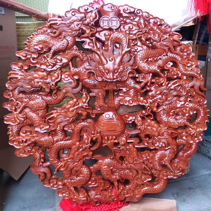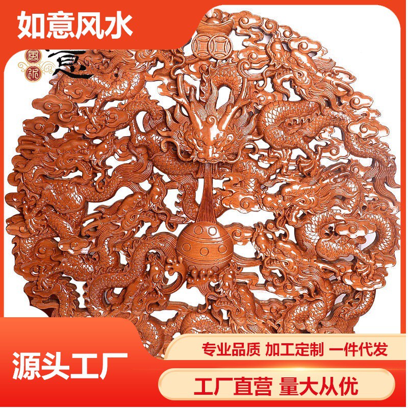 创意摆件桃木九龙挂盘桃木木雕挂件公司工艺品厂家批发办公木制