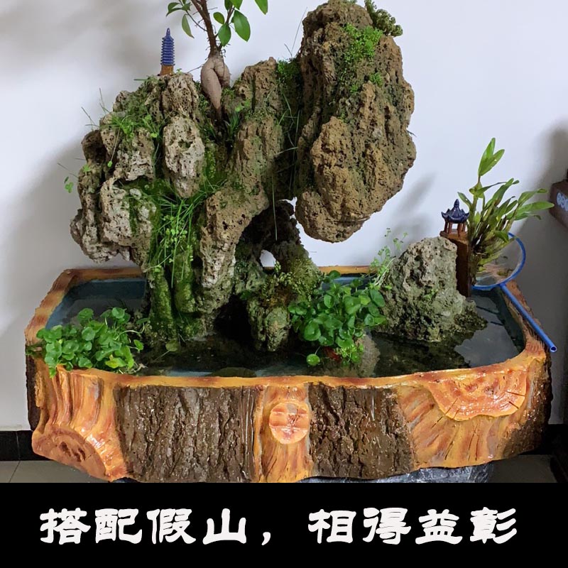 定制假山盆仿古木树脂鱼池 中国风景盆阳台客厅庭院招财 落地摆件