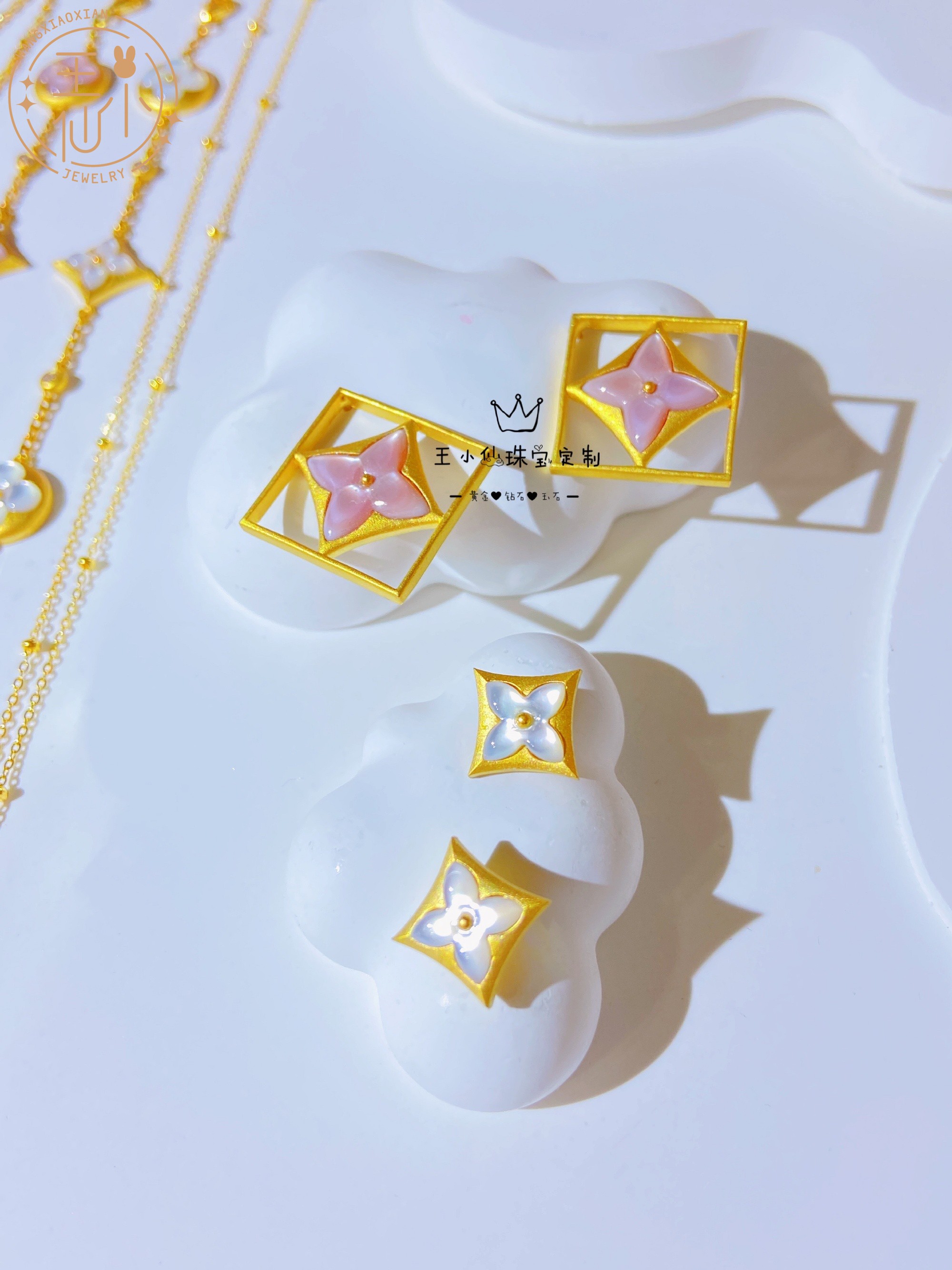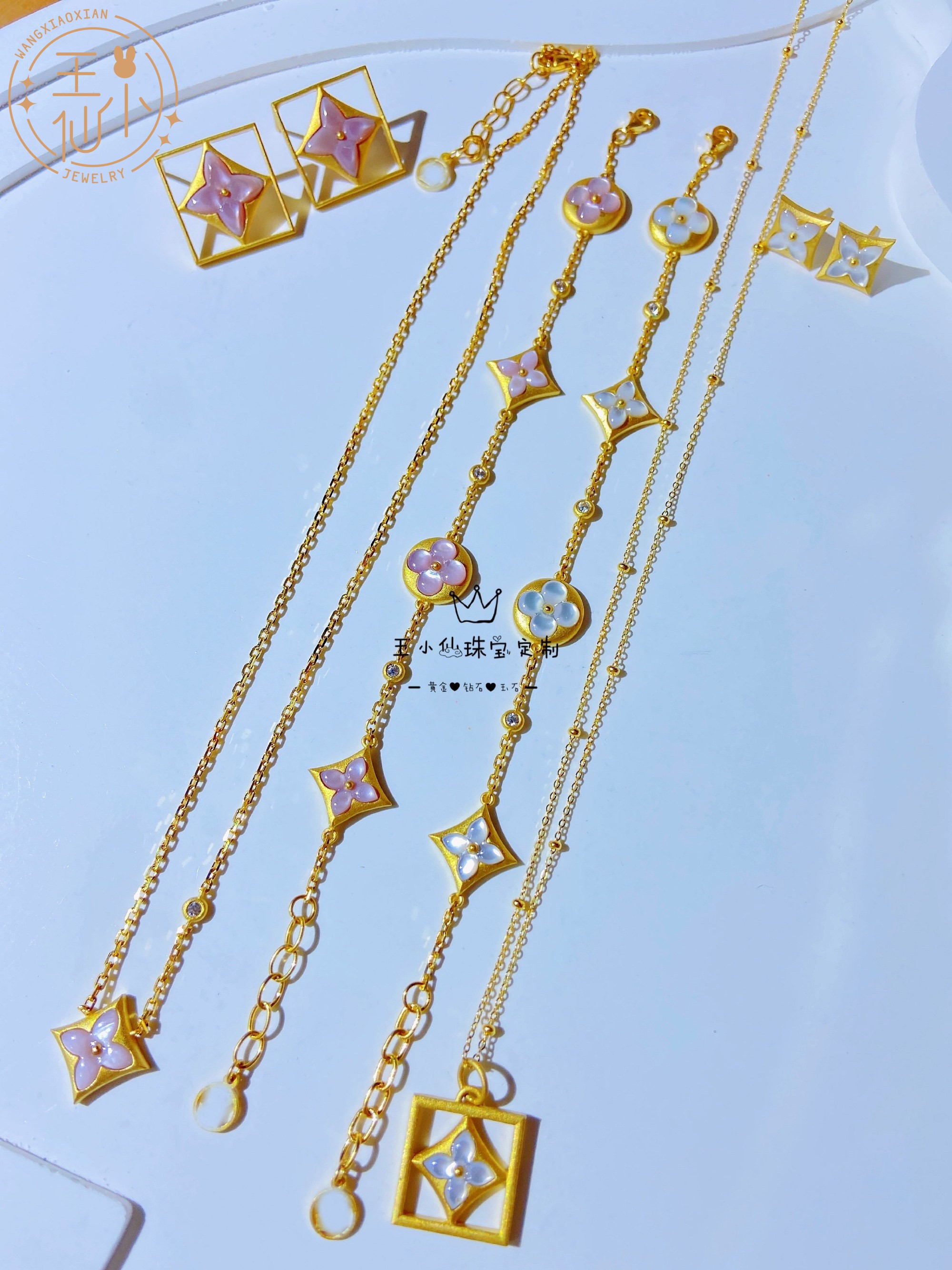 999足金 精品工艺少女系白贝粉贝镶嵌 四叶草系列手链女