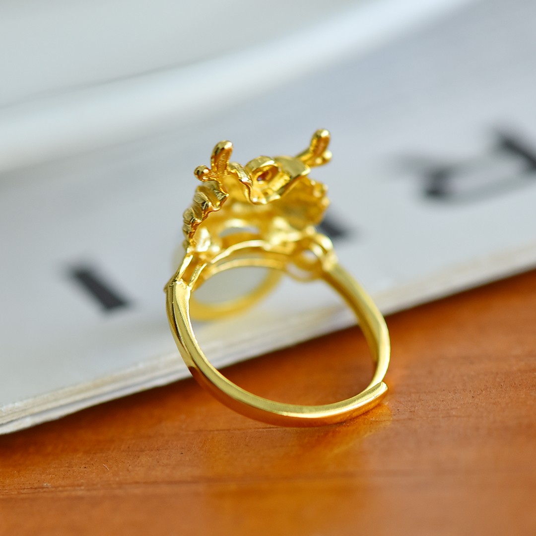 s925银镶和田玉吉祥龙戒指