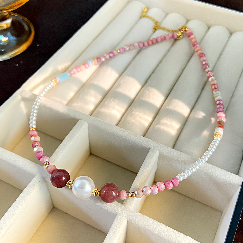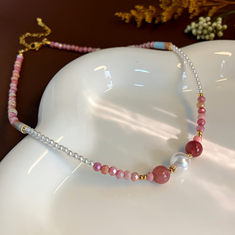甜美多巴胺米珠珍珠圆柱串珠项链时尚气质小众锁骨链个性百搭颈链