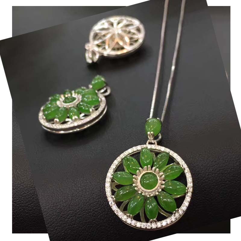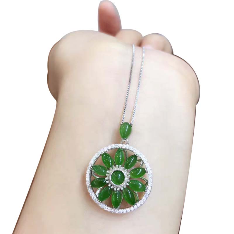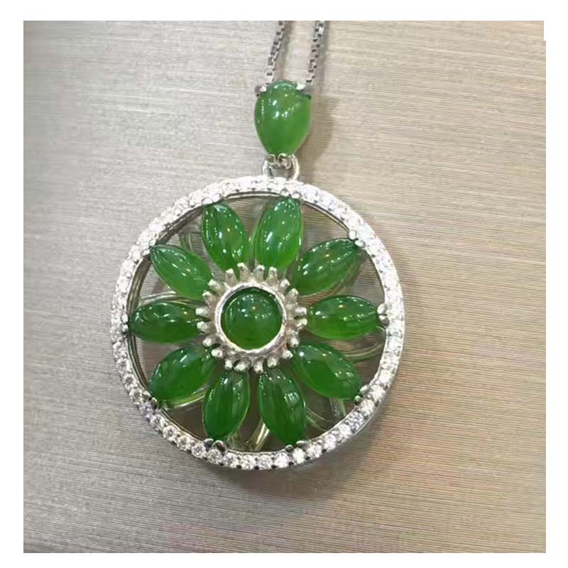 时尚和田碧玉面镶925银吊坠马眼挂件简约 时来运转吊坠纯银风包邮