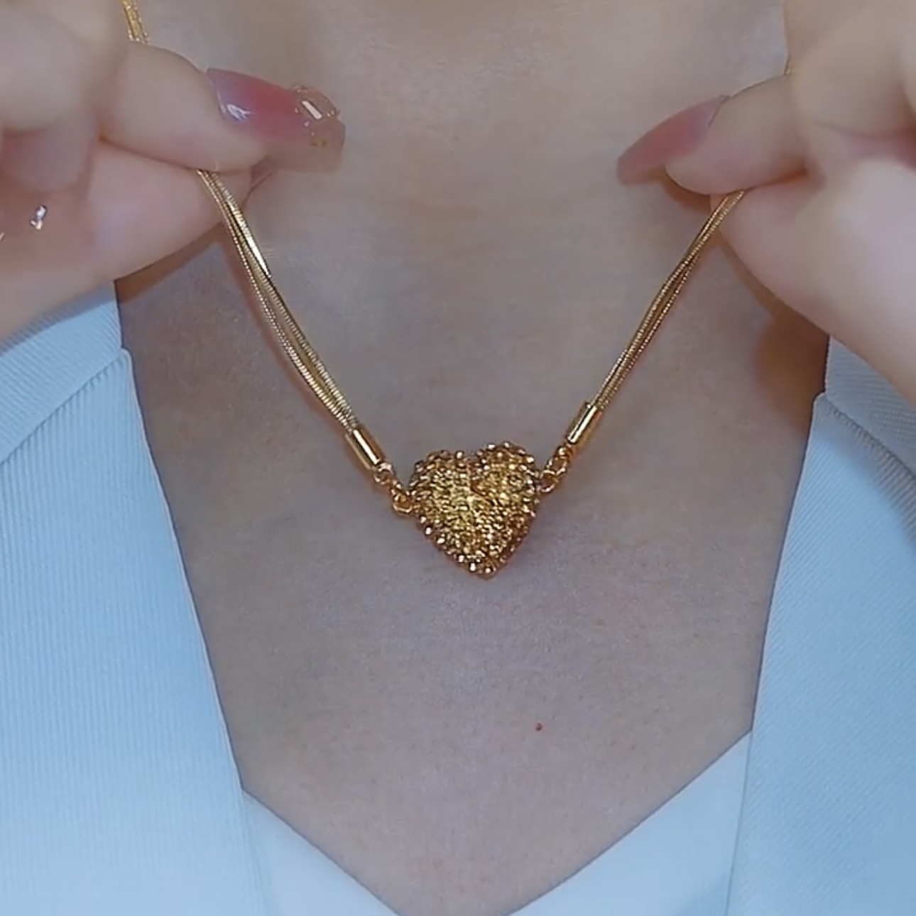 个性轻奢时尚高级感镶钻咖色磁吸爱心吊坠锁骨设计气质百搭项链女