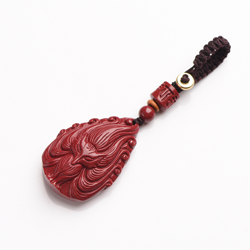 正品官方旗舰店朱砂原石黑曜石狐狸男女个性吊坠手机链钥匙扣挂件