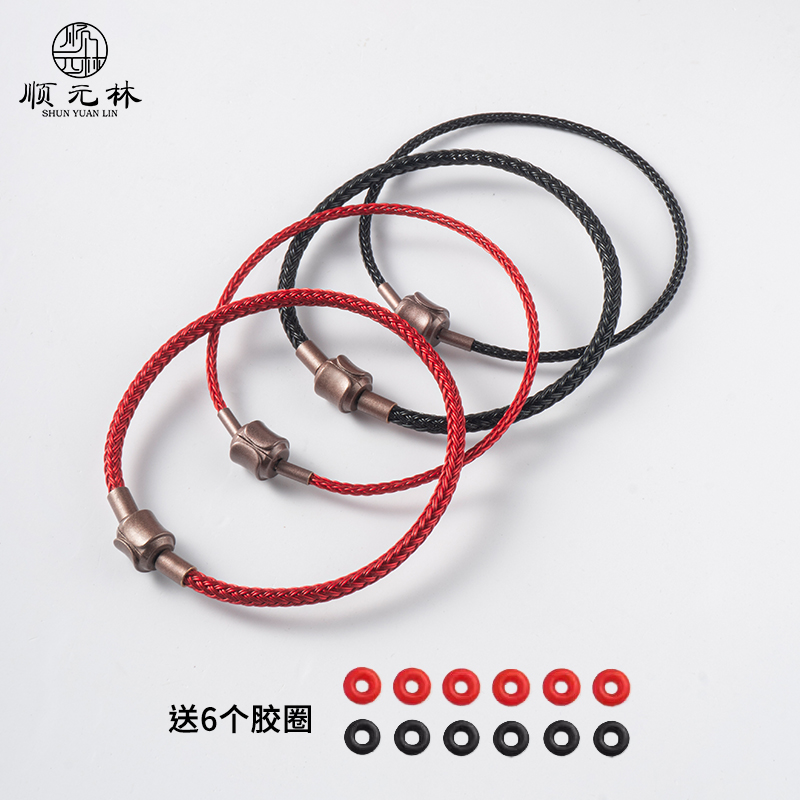 钢丝绳手绳男女串穿3d硬金小孔黄金转运珠编织皮绳本命年红绳手链