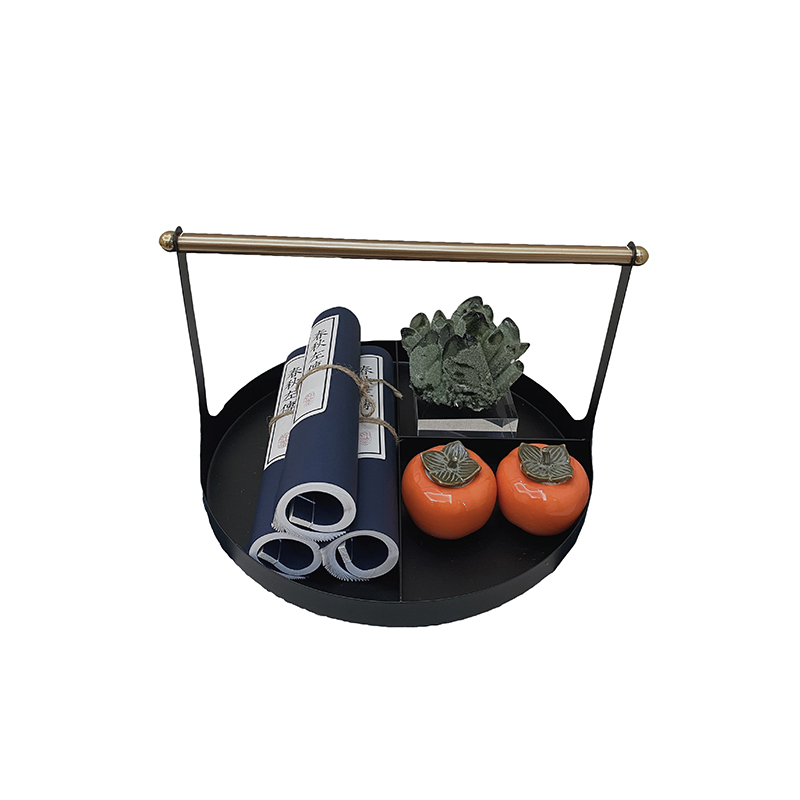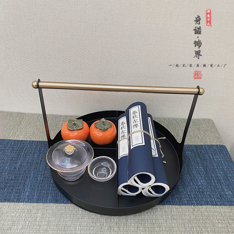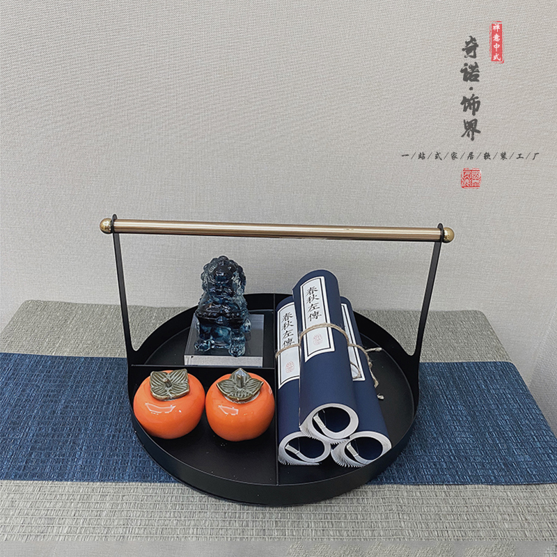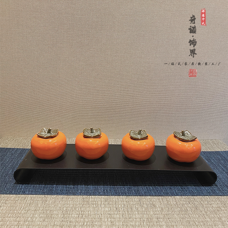 新中式手提托盘小柿子摆件样板房间书房桌面客厅卷轴软装饰品组合