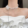 UNBEATEN白色山茶花串珠流苏小众设计感项链女choker颈链2025新款