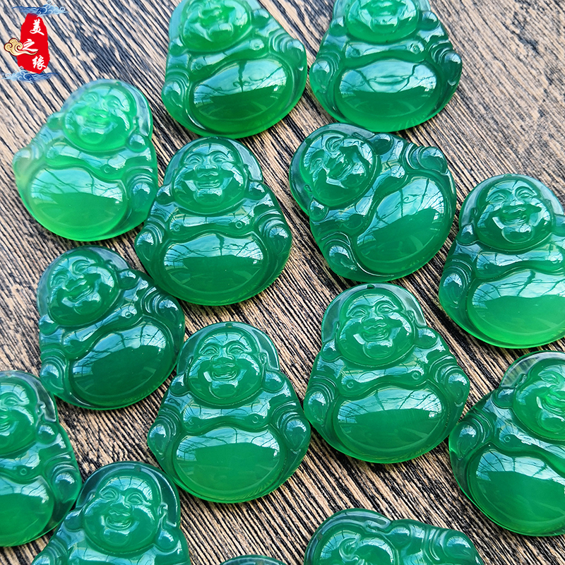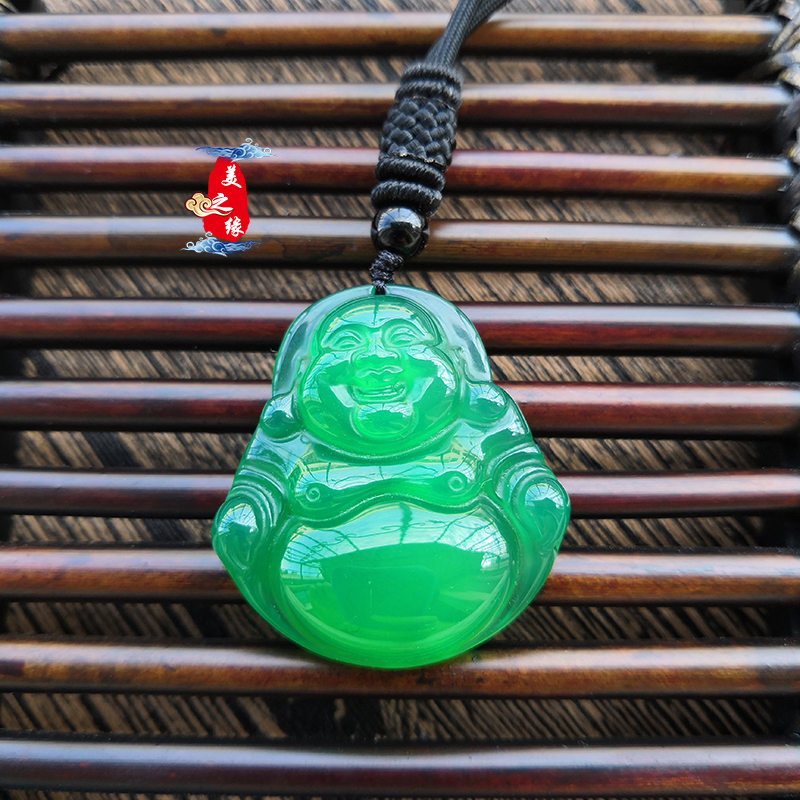 天然正品冰种玉髓佛公吊坠女款绿色玛瑙女款链子挂件招财玉石挂坠