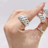 韩国原单S925纯银重工牛角包戒指个性南瓜开口食指戒潮酷时尚简约