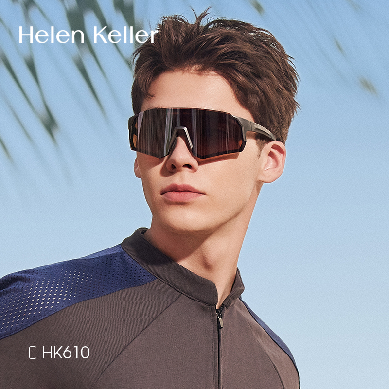 海伦凯勒新款户外运动太阳镜男全屏抗冲击轻质墨镜防紫外线HK610