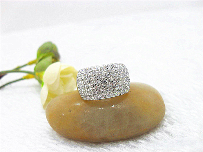 女士纯银镀白金镶嵌锆石戒指手工微镶白锆石戒指环闪钻水晶钻包邮