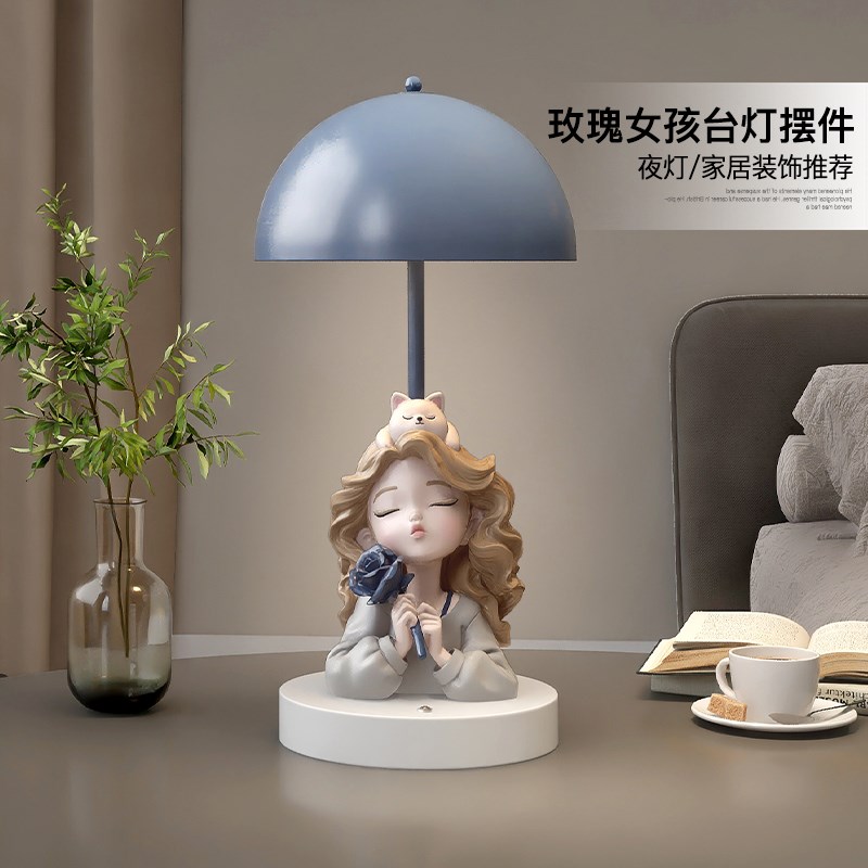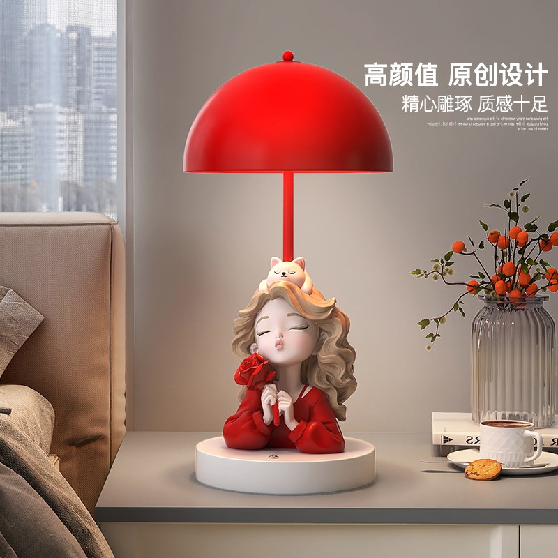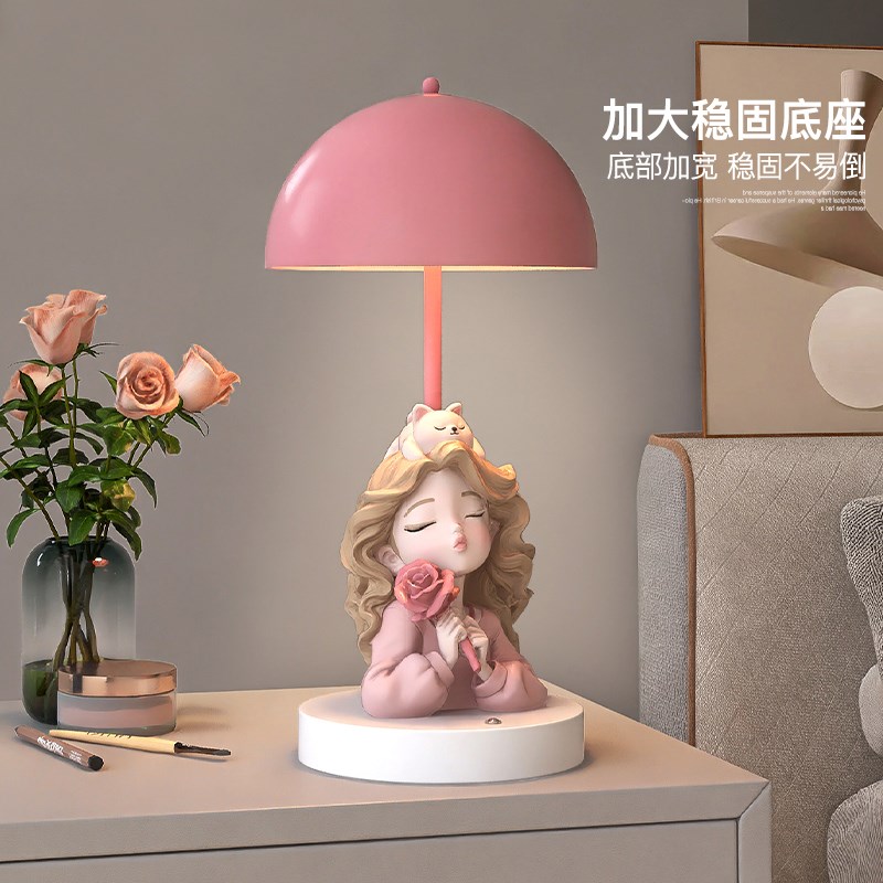 奶油风创意女孩台灯卧室床头灯A主卧小夜灯轻奢高级感生日礼物
