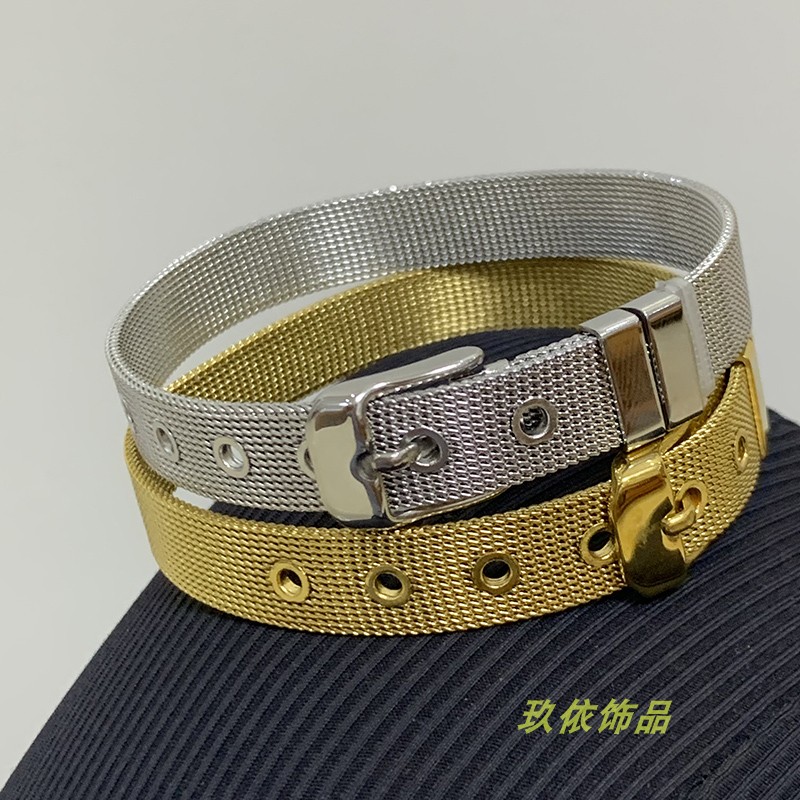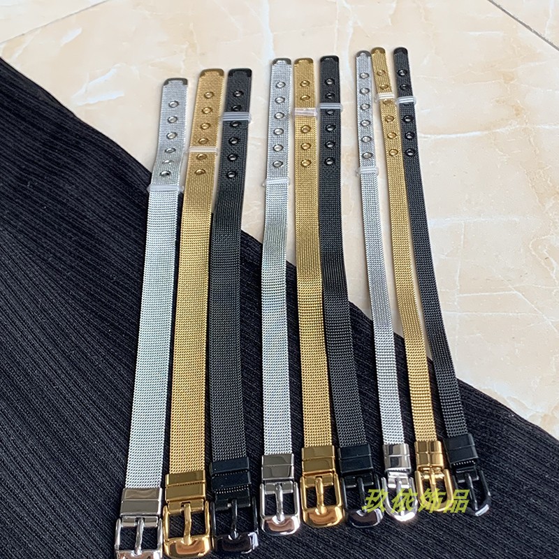 6810mm不锈钢表带手链欧美时尚钛钢金属首饰黑色金色钢色手环