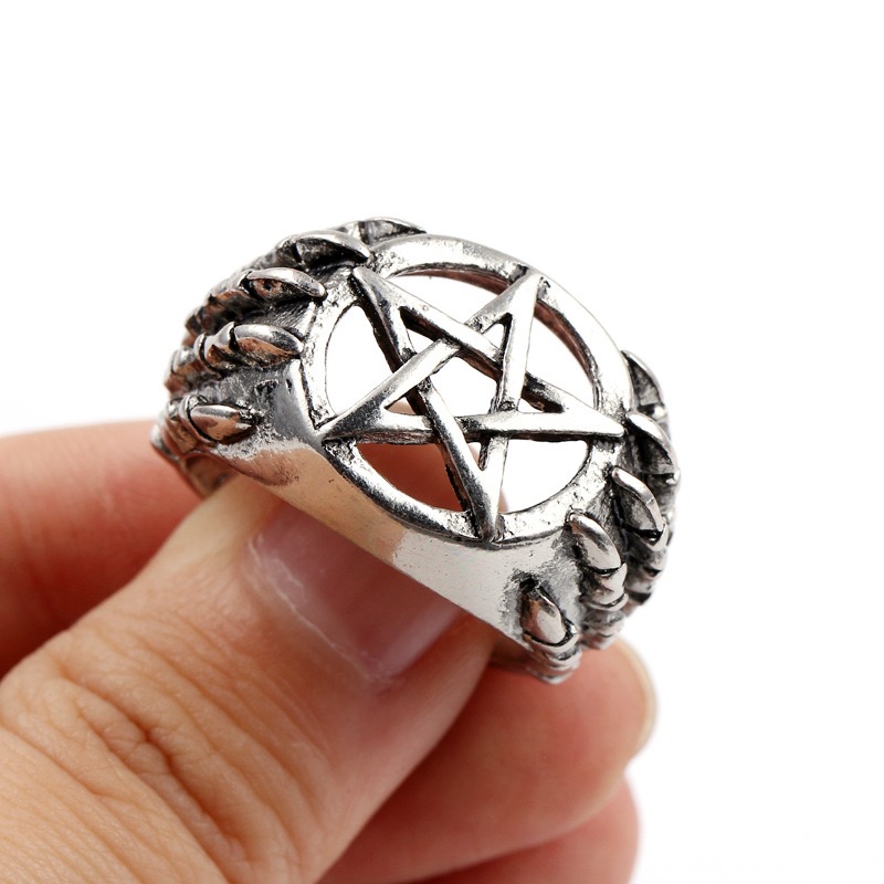骷髅手倒五芒星戒指逆五角星戒指吸血鬼日记同款