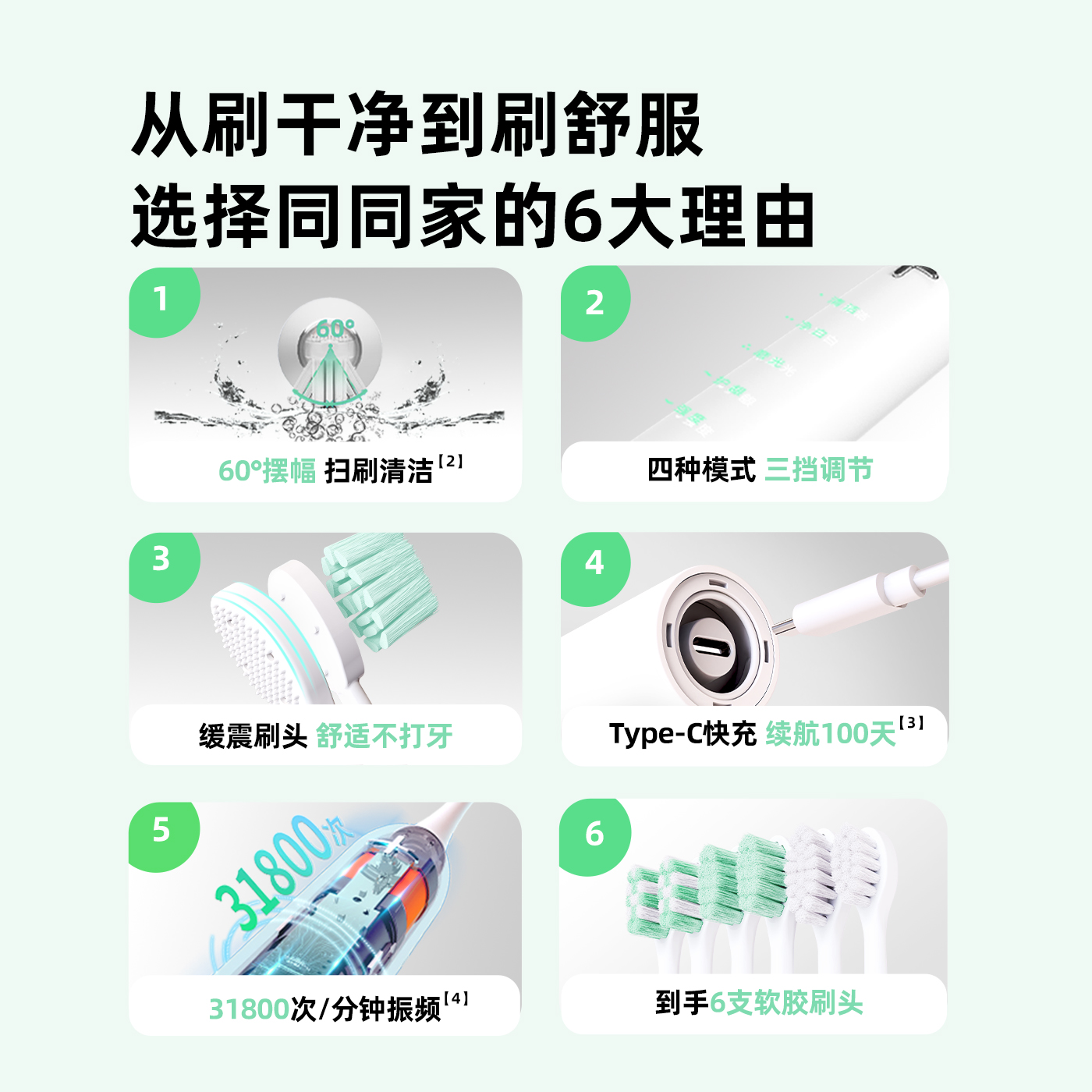 同同家电动牙刷成人全自动男女士男生专用情侣款套装实用礼物T9U