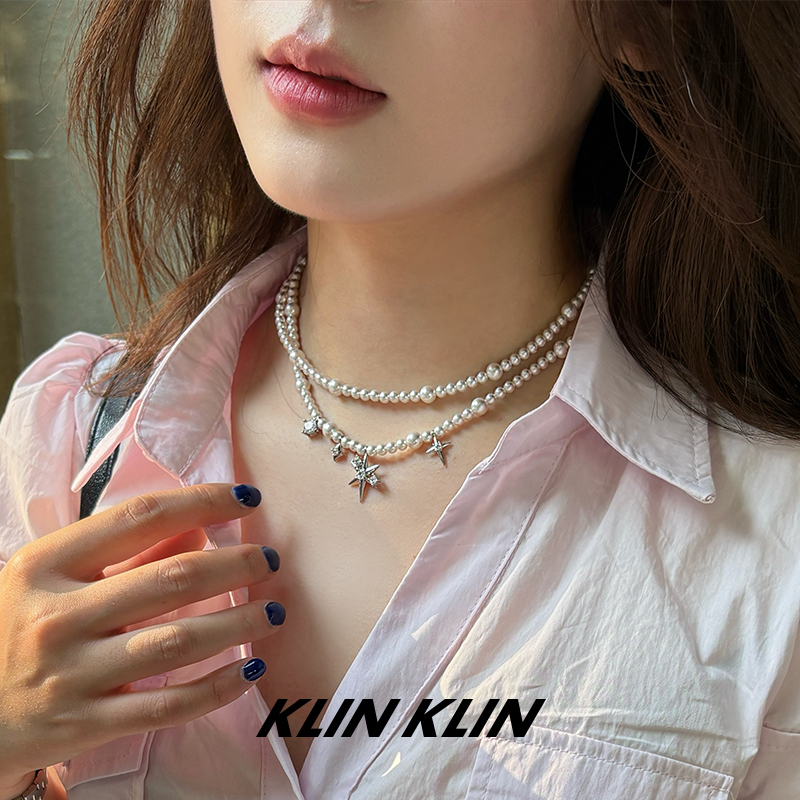 KLINKLIN星芒多层珍珠长款项链双层毛衣链六芒星女原创设计感叠戴
