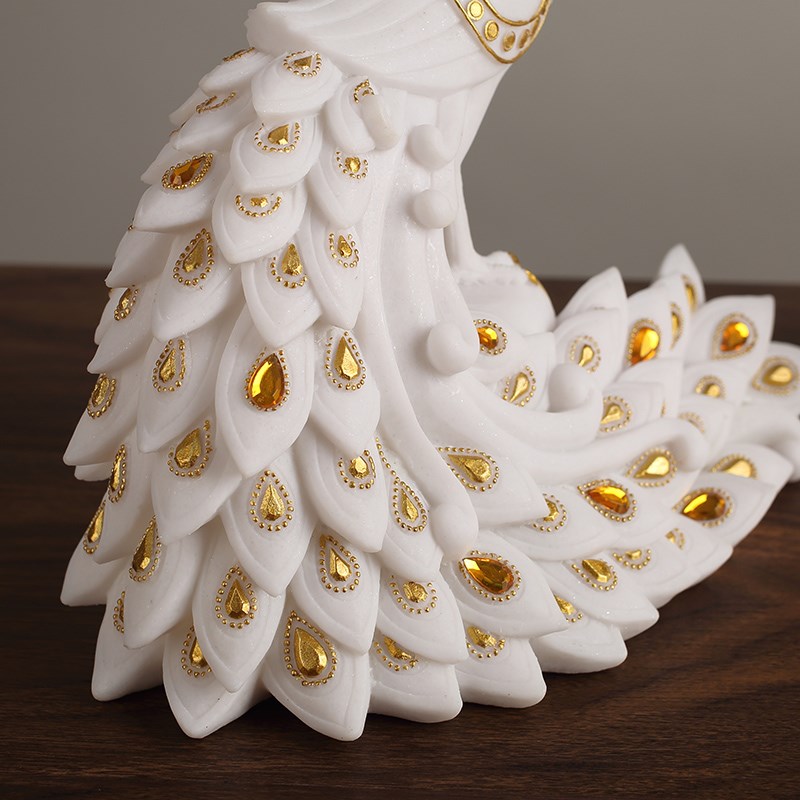 轻奢孔雀装饰摆件客厅桌面电视柜玄关装饰品新中式复合砂岩工艺品
