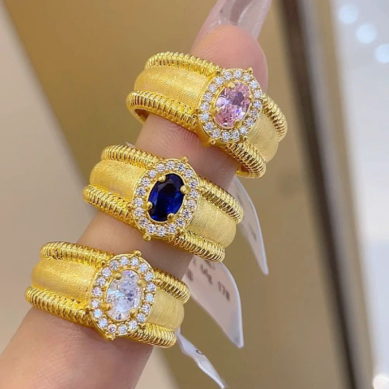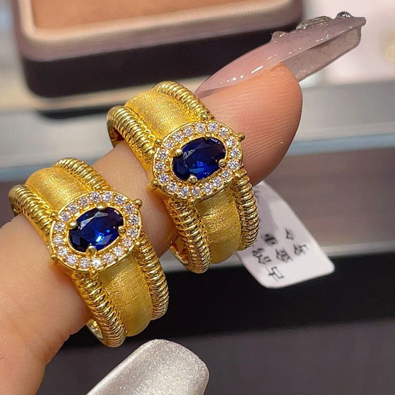 小红书爆款2025年古法闪钻戒指鸽子蛋宽版拉丝排珠戒指宝石指环