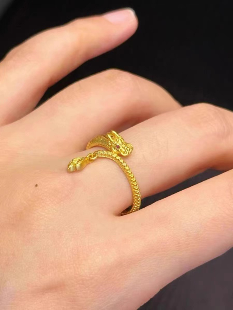 5D黄金生肖龙戒指999足金男女款情侣戒指对戒本命年纯金活口指环