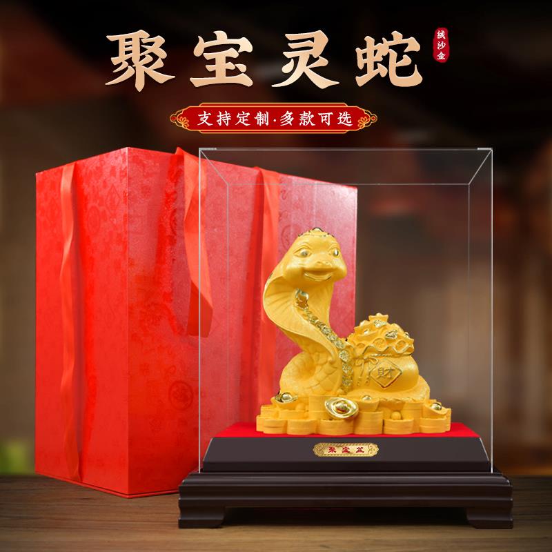 蛇年2025吉祥物绒沙金蛇摆件招财工艺家居饰品新年创意活动小礼物