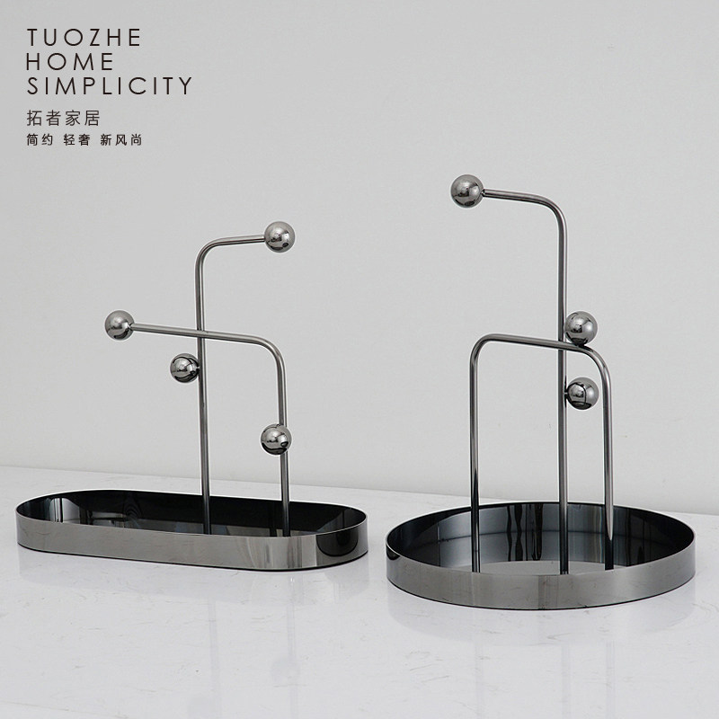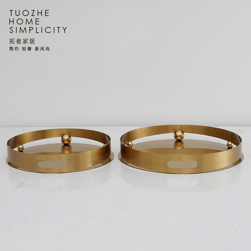 样板间托盘售楼处现代简约圆形不锈钢收纳摆盘家居玄关北欧摆件