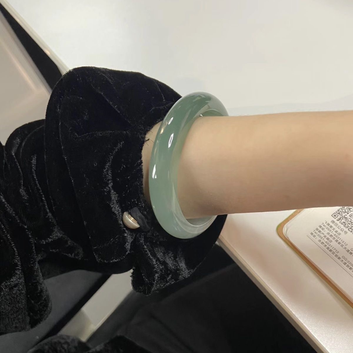 缅甸翡翠玉手镯油青色翡翠处理手镯女冰种贵妃玉镯半山水镯子送人