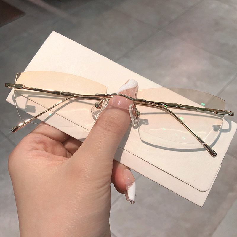 超轻纯钛无边框近视眼镜男款可配有度数防雾防蓝光变色素颜眼睛女