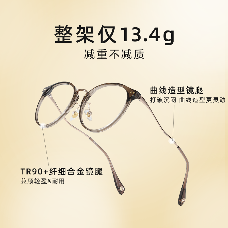 LOOK眼镜TR款超轻冷茶色眼镜框素颜显白百搭专业可配度数女防蓝光