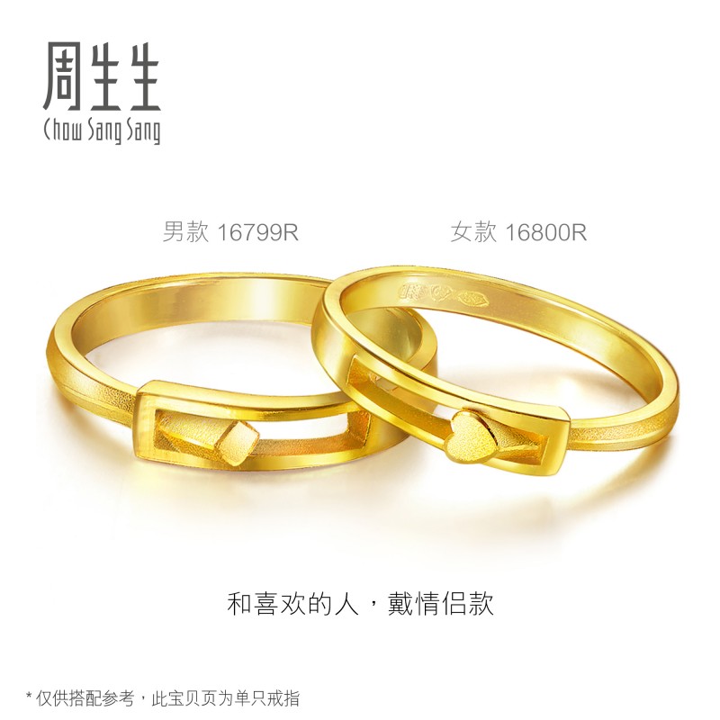 周生生官方Essence永系列足金心相拥黄金戒指情侣对戒女款16800R