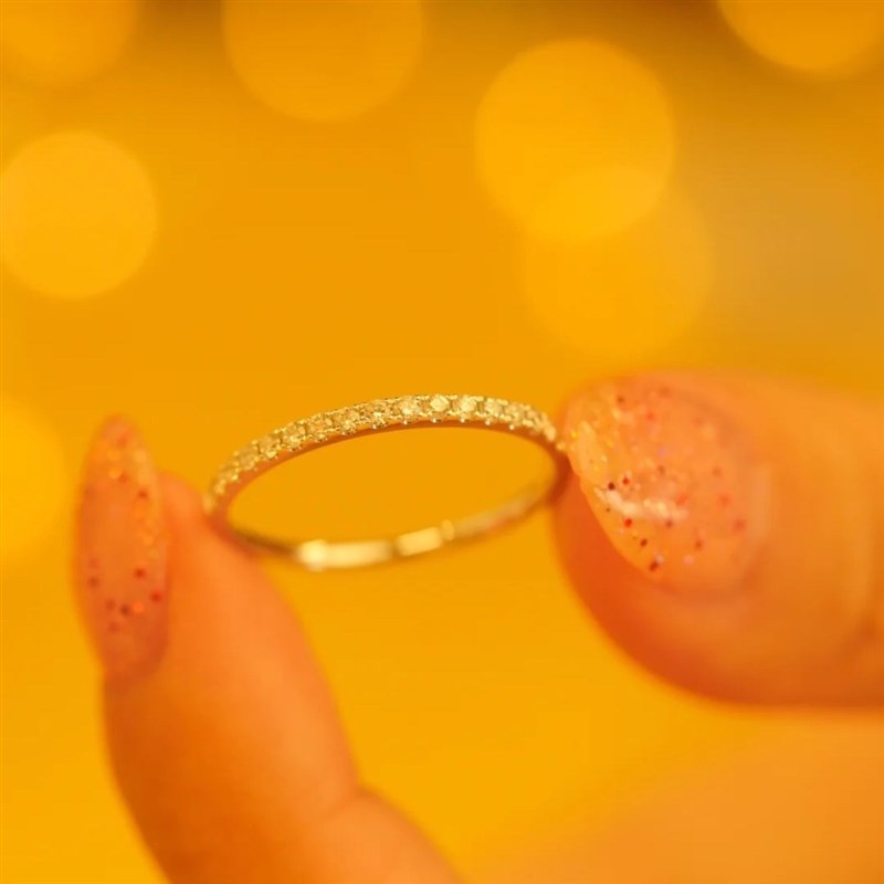 高保色18K金戒指女时尚个性小钻戒极细排钻锆石尾戒叠戴ins潮小众