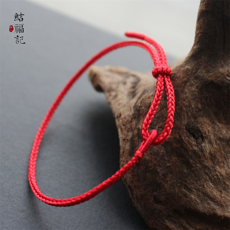 结福记本命年定制红绳简约手工编织手绳手链男女调节儿童手镯穿珠