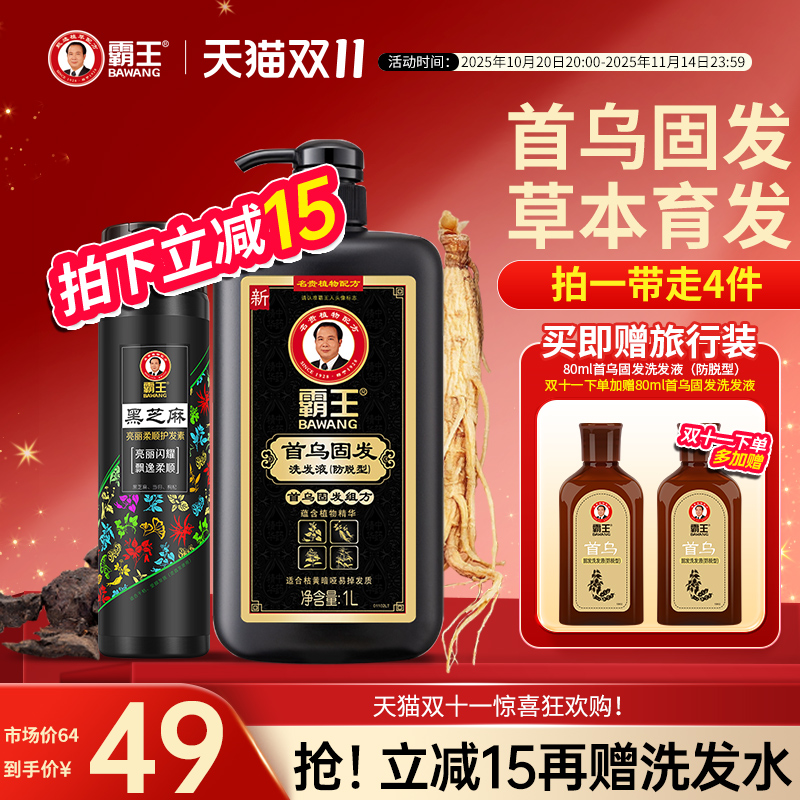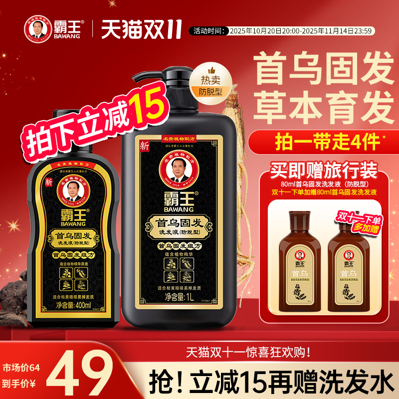 霸王洗发水控油蓬松何首乌黑芝麻洗发露固发去黄洗发液防脱洗头膏