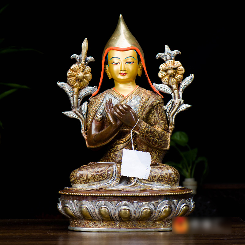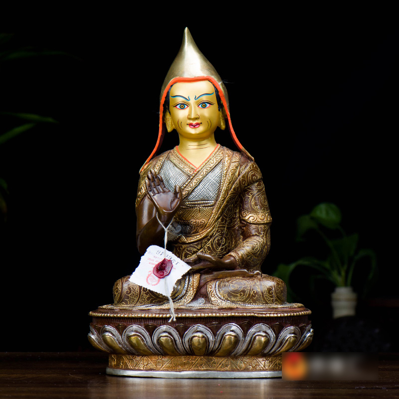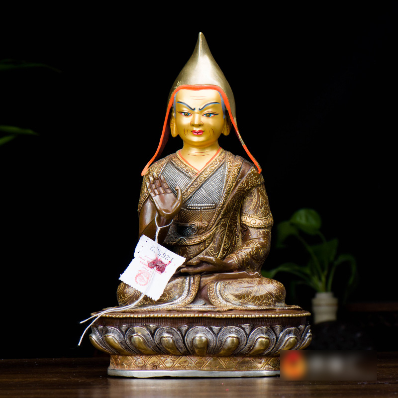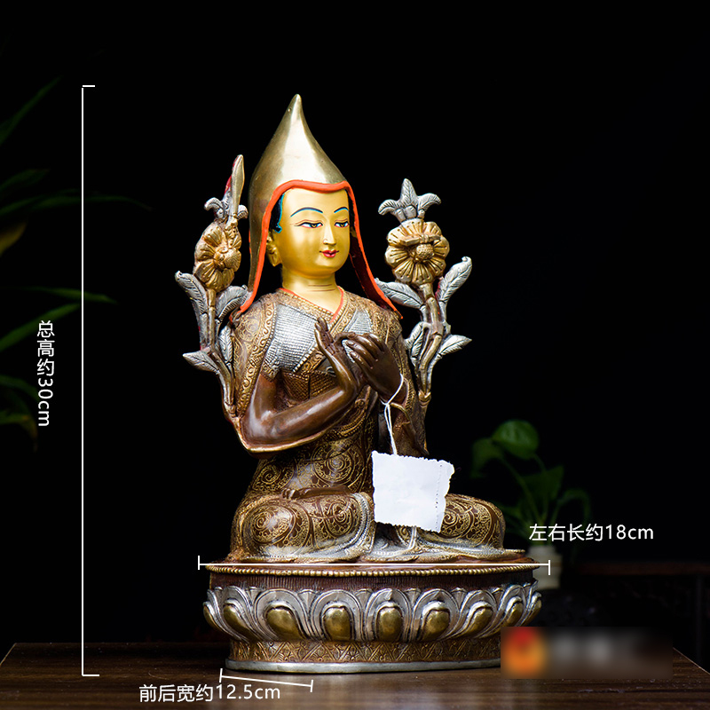家用手工铜像室内摆件尼泊尔鎏金鎏银10寸宗喀巴师徒三人铜像