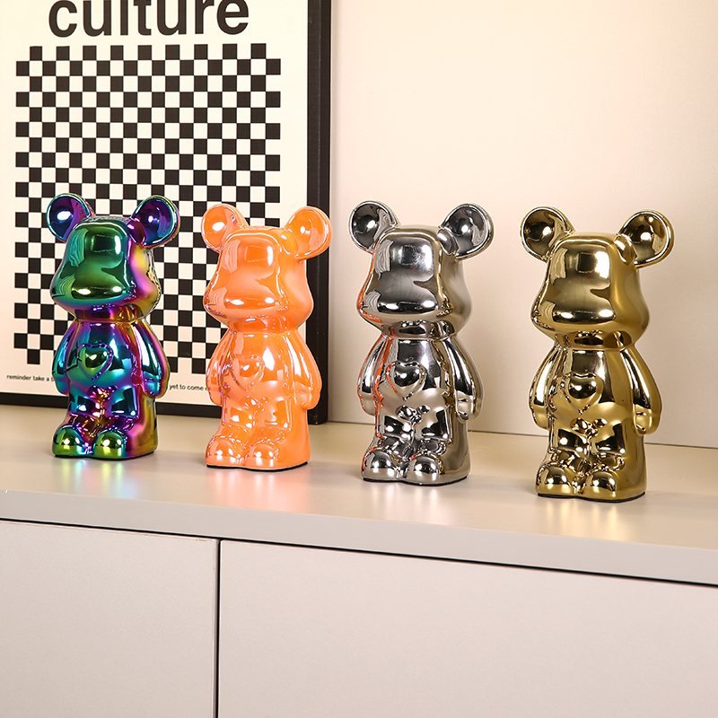 新款陶瓷娃娃大号爱心流体熊暴力熊公仔摆件粉色储存钱罐桌面摆设