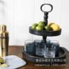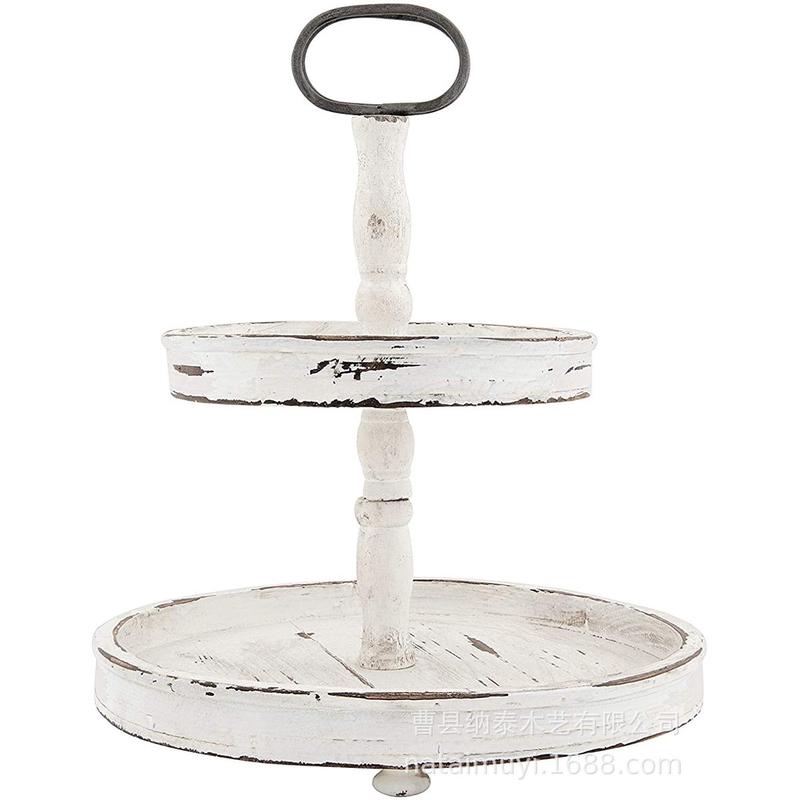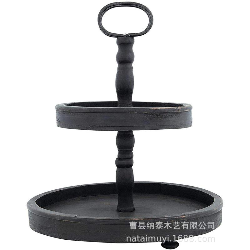 热销桐木双层圆形乡村复古厨房农舍做旧风格托盘木质拖盘双层置物