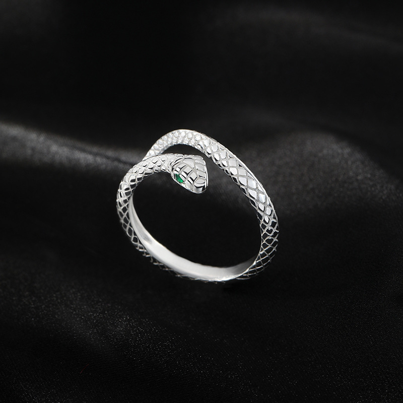 S999足银灵蛇戒指女纯银生肖蛇配饰尾戒小众设计开口调节情侣指环
