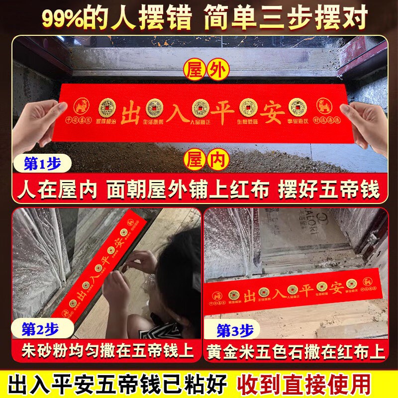 五帝钱压门槛石下装修门口出入平安铜钱红布过门石下压的物品