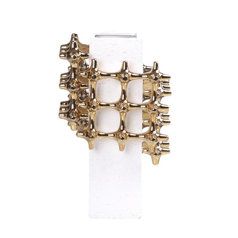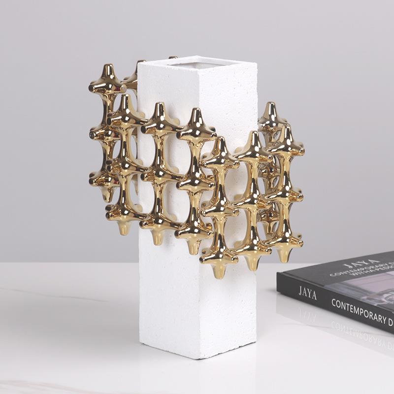 设计师方格几何花瓶样板间玄关博古架展厅轻奢干花插花花器摆件