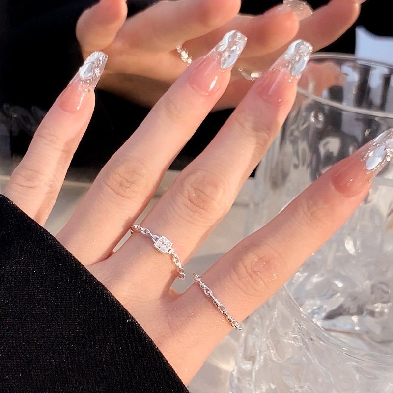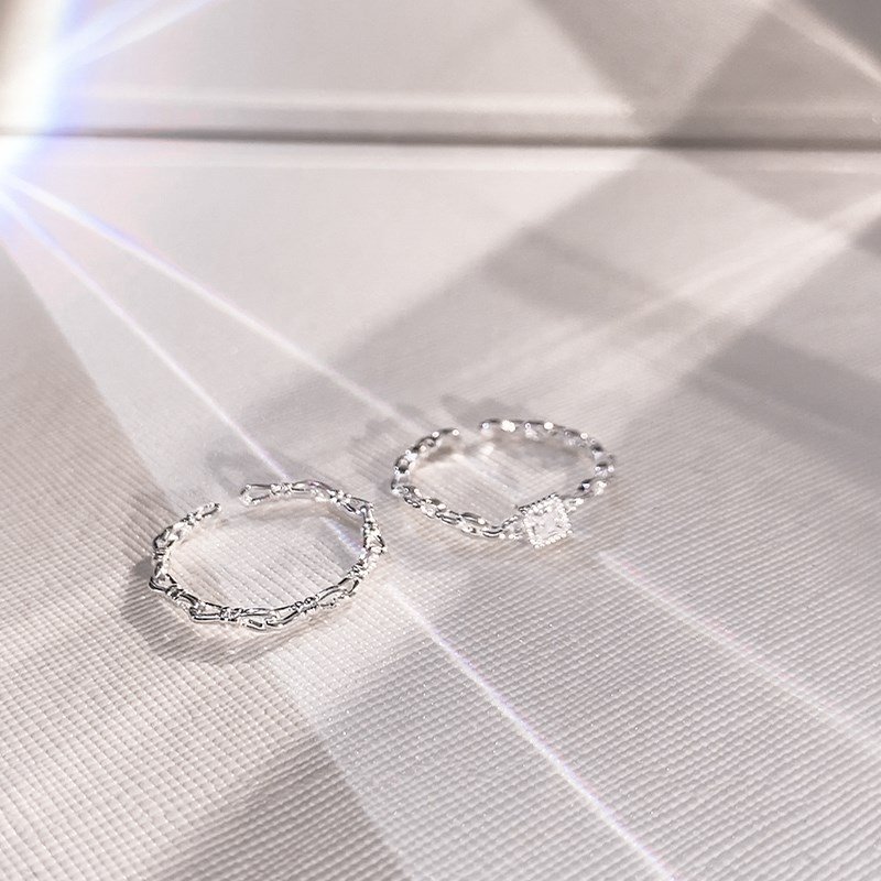小方钻开口戒指女小众设计回流素圈戒指女轻奢高级感食指指环素戒