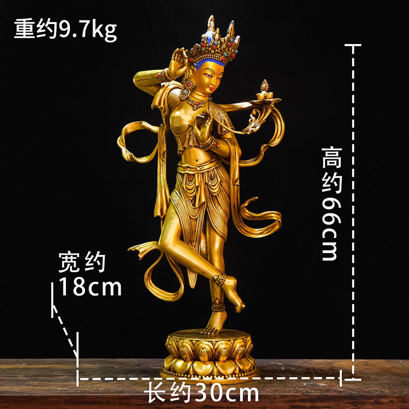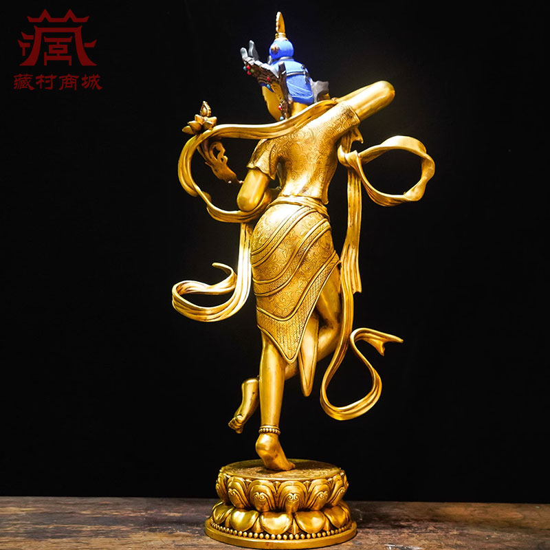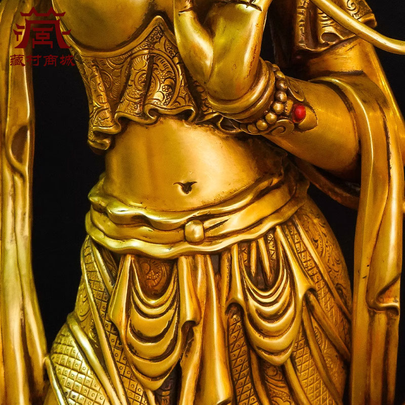 全鎏金《绿度母》精工铜雕花室内家用《绿多罗》桌面铜像摆件