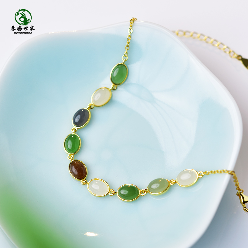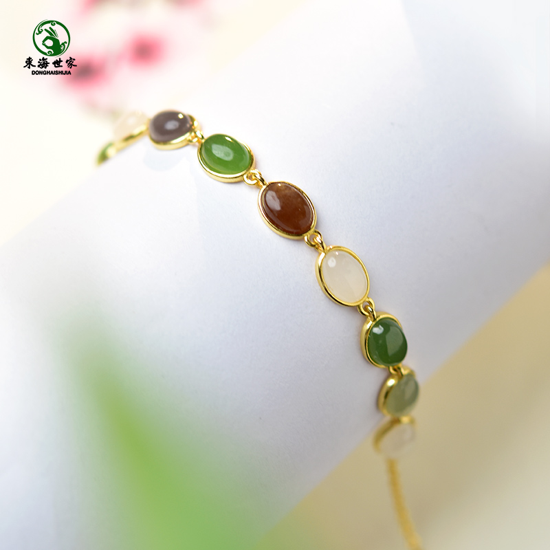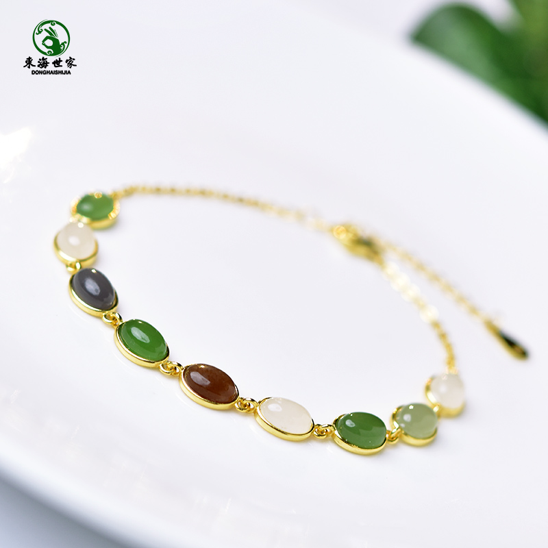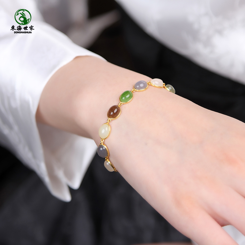 和田玉手串女男水晶玛瑙翡翠玉石糖青白玉碧玉晴水散珠子多宝手链