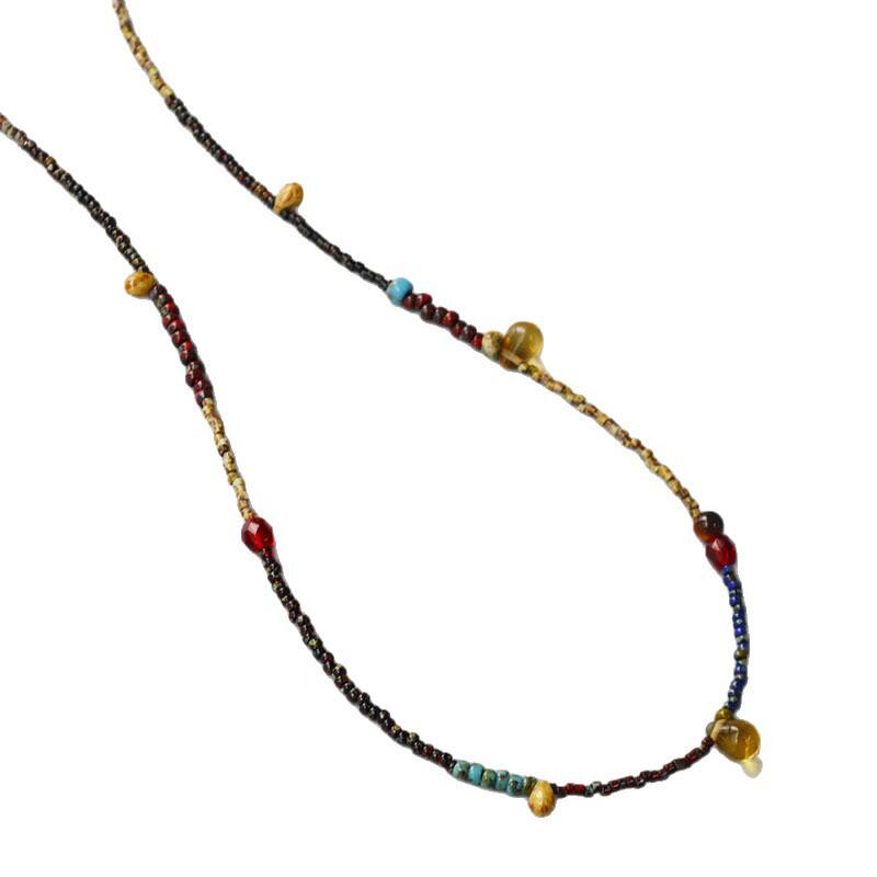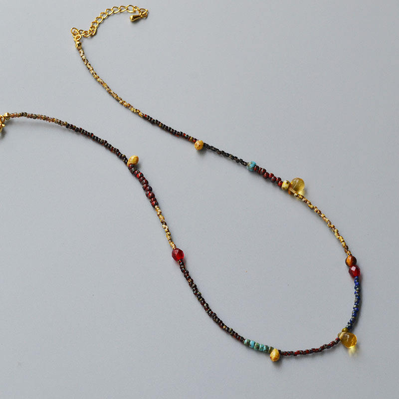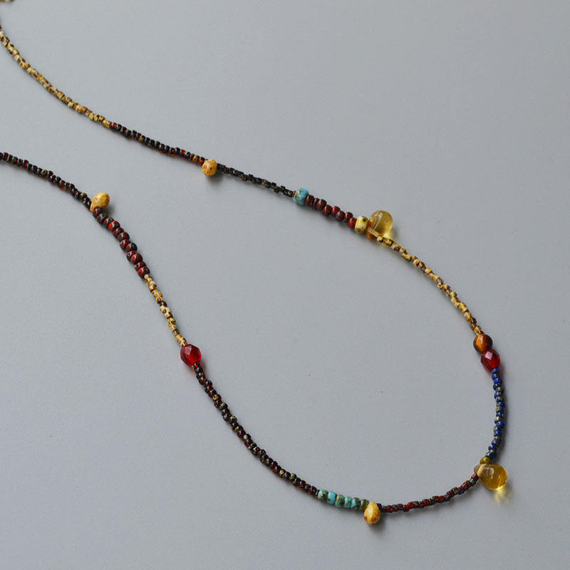 日系小众设计复古文艺御幸古董珠黄色水滴串珠细巧秀气项链锁骨链