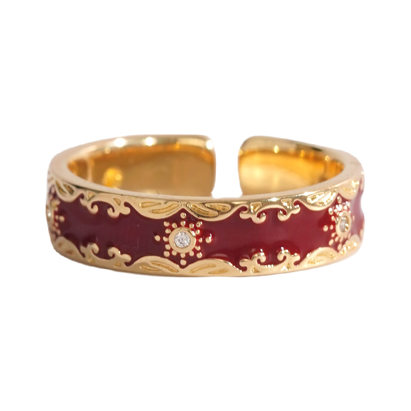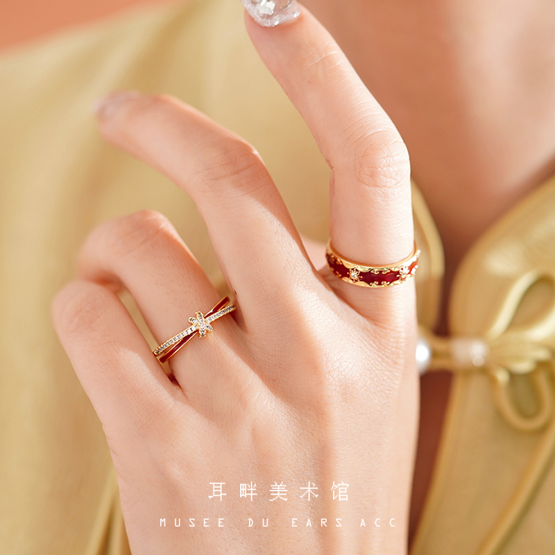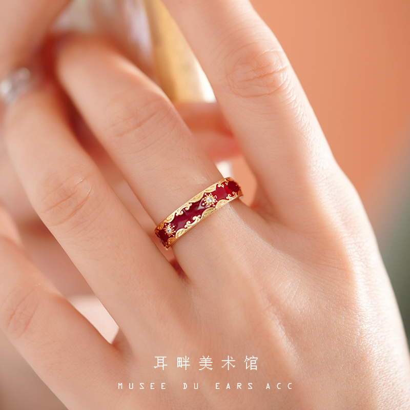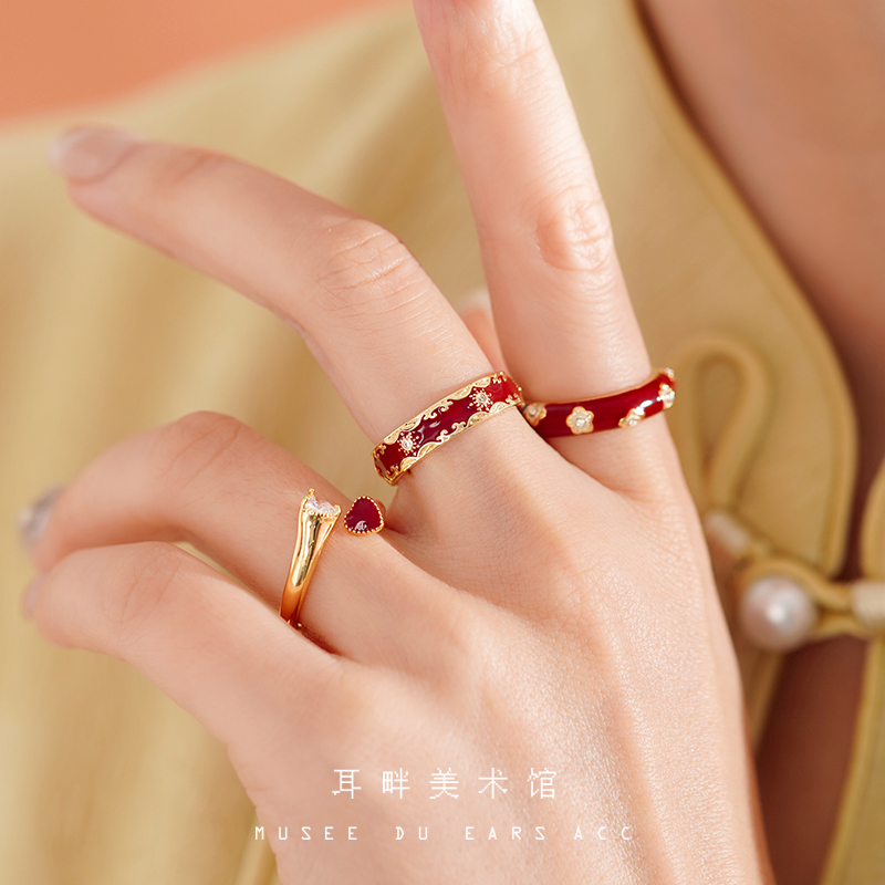 A珐琅彩烟花红色戒指女精致时尚高端轻奢高级感小众新年圣诞配饰