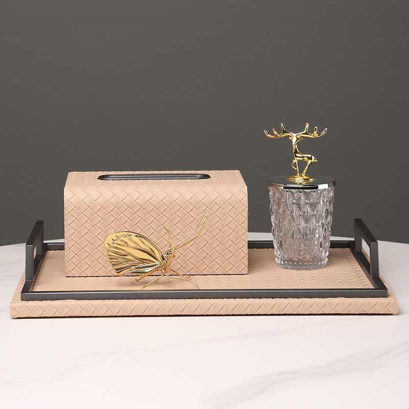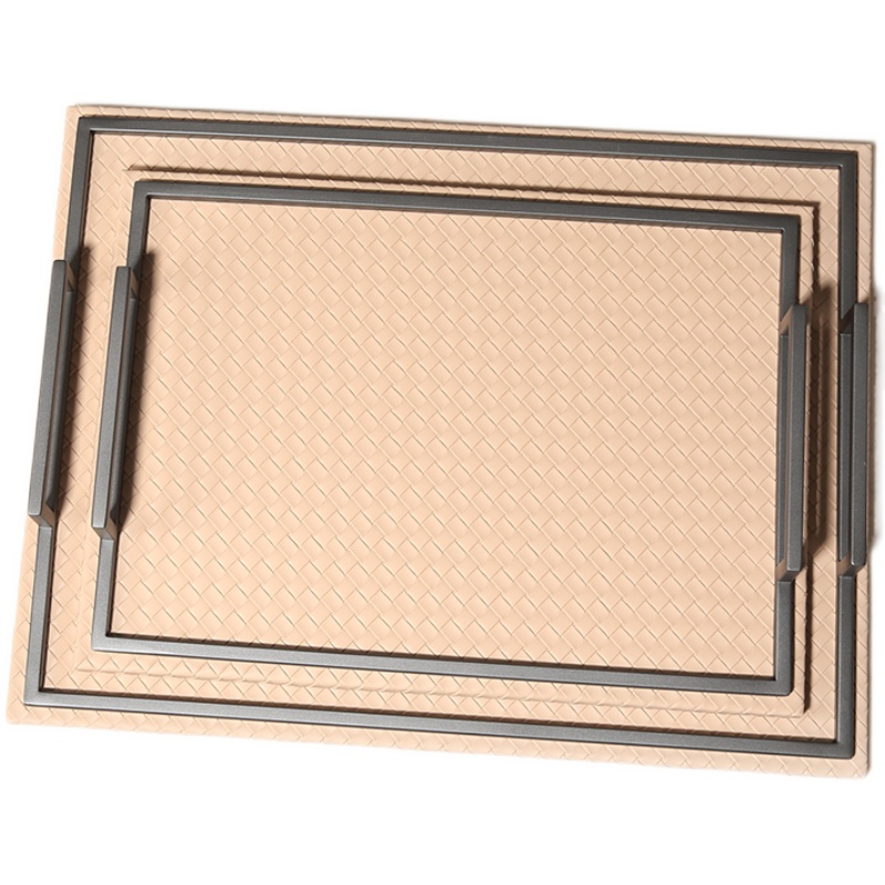 皮质长方形编织纹托盘现代简约茶几样板间客厅钥匙梳妆台收纳摆件