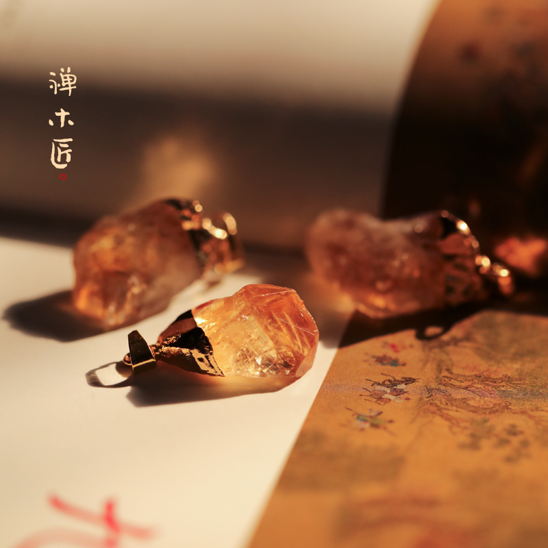 禅木匠【小财气吊坠】天然黄水晶吊坠原石项链水晶挂件925银饰品